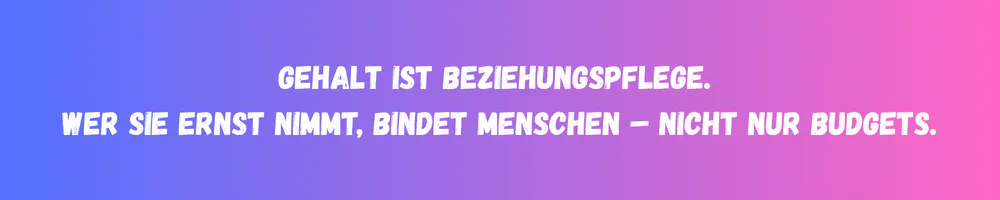 Denn Gehalt ist mehr als eine Zahl – es ist Beziehungspflege. Entscheidend ist nicht die Höhe des Gehalts, sondern ob Mitarbeitende sich fair behandelt, ehrlich informiert und ernst genommen fühlen.